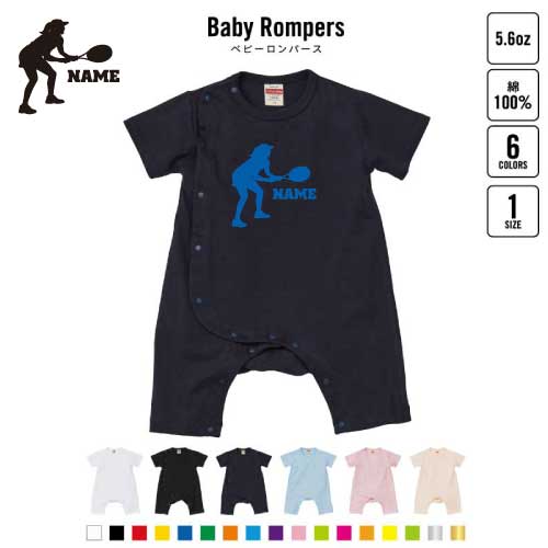 「女子テニスプレーヤー」名入れベビーカバーオール ロンパース 半袖 出産祝い ベビー服 新生児 80サイズ 綿100% 下着 肌着 パジャマ カバーオール ボディスーツ Pre-mo 名前入り おなまえ