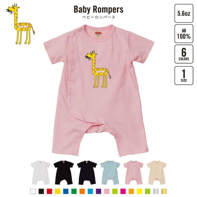 「GIRAFFE(もぐもぐキリン)」名入れベビーカバーオール ロンパース/男の子 女の子 おしゃれ ベビー服 出産祝い 綿100% お名前入りギフト きりん 麒麟【ネコポス発送可】【mmk_bsr】名前入り おなまえ
