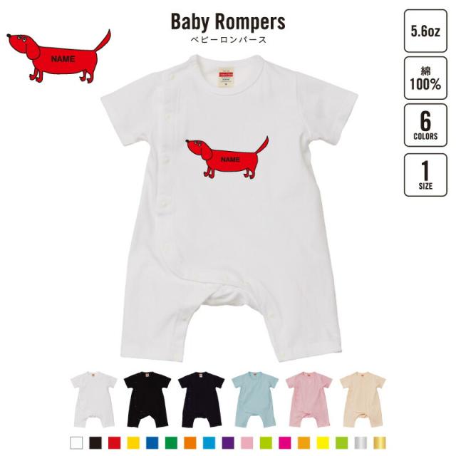 「Dachshund(レッド)」名入れベビーカバーオール ロンパース/男の子 女の子 おしゃれ ベビー服 出産祝い 綿100% お名前入りギフト ミニチュア・ダックスフンド【ネコポス発送可】【mmk_bsr】名前入り おなまえ
