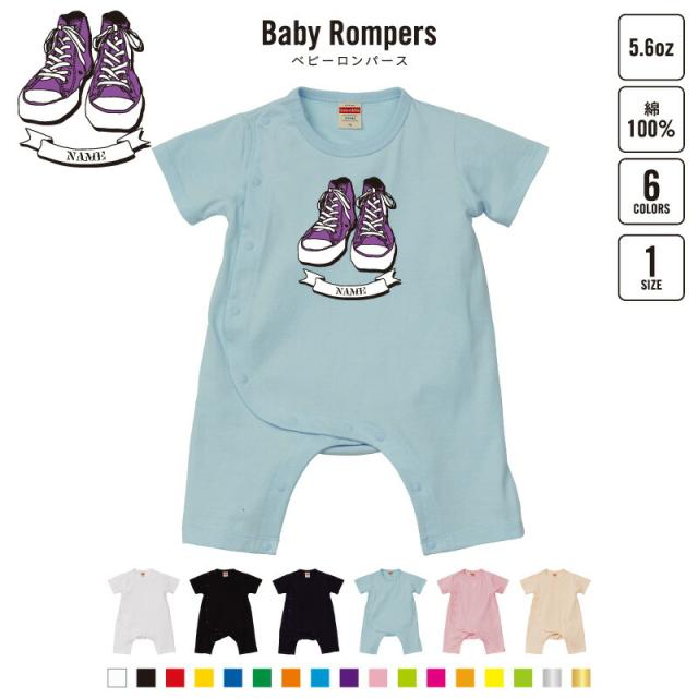 「SNEAKER(パープル)」名入れベビーカバーオール ロンパース/男の子 女の子 おしゃれ ベビー服 出産祝い 綿100% お名前入りギフト スニーカー コンバース【mmk_bsr】名前入り おなまえ