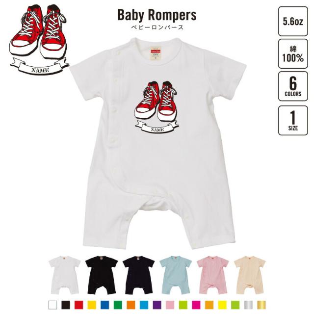 「SNEAKER(レッド)」名入れベビーカバーオール ロンパース/男の子 女の子 おしゃれ ベビー服 出産祝い 綿100% お名前入りギフト スニーカー コンバース【mmk_bsr】名前入り おなまえ
