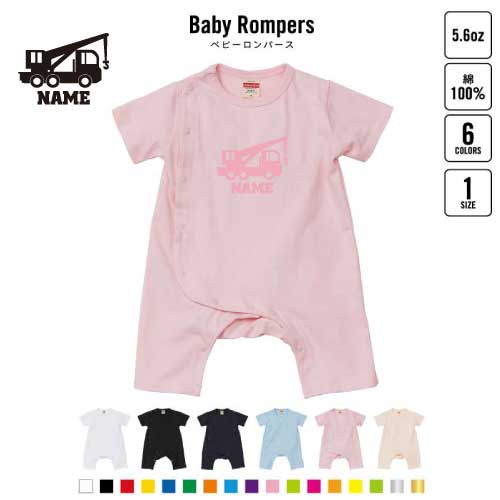 レッカー車 名入れベビーカバーオール ロンパース 半袖 出産祝い ベビー服 新生児 80サイズ 綿121% 下着 肌着 パジャマ カバーオール ボディスーツ 乗り物 車 はたらく 趣味