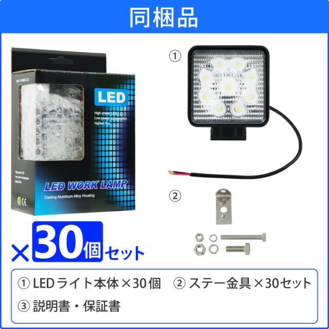 【30個】LED投光器 27W led 作業灯 12v 24v 広角 ledライト ワークライト led作業灯 前照灯 LED集魚灯 角型 バックランプ デッキライト 投光器 led 屋外 防水