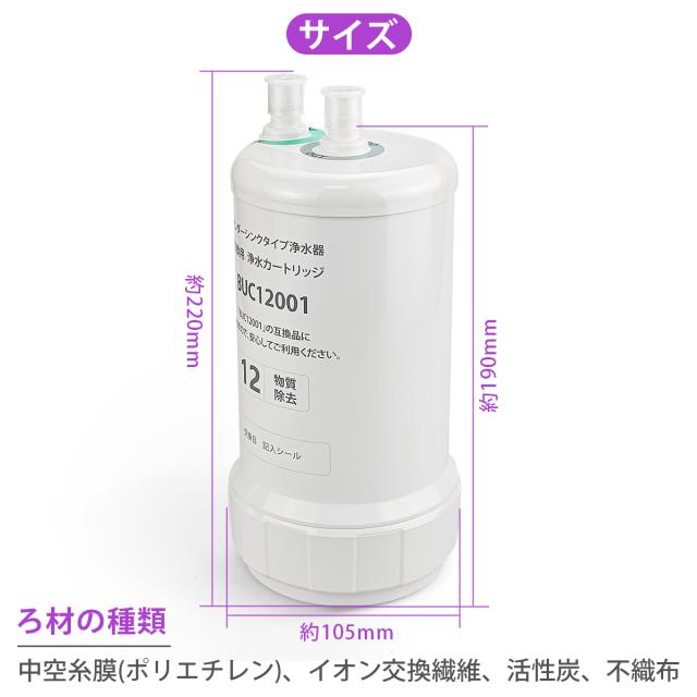 BUC12001 三菱ケミカル クリンスイ ビルトイン浄水器 交換用カートリッジ 12物質除去タイプ UZC2000 後継品 交換用浄水カートリッジ 三菱レイヨン (互換品/1個入り)