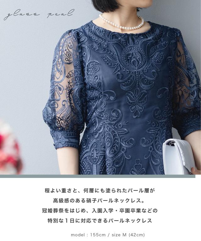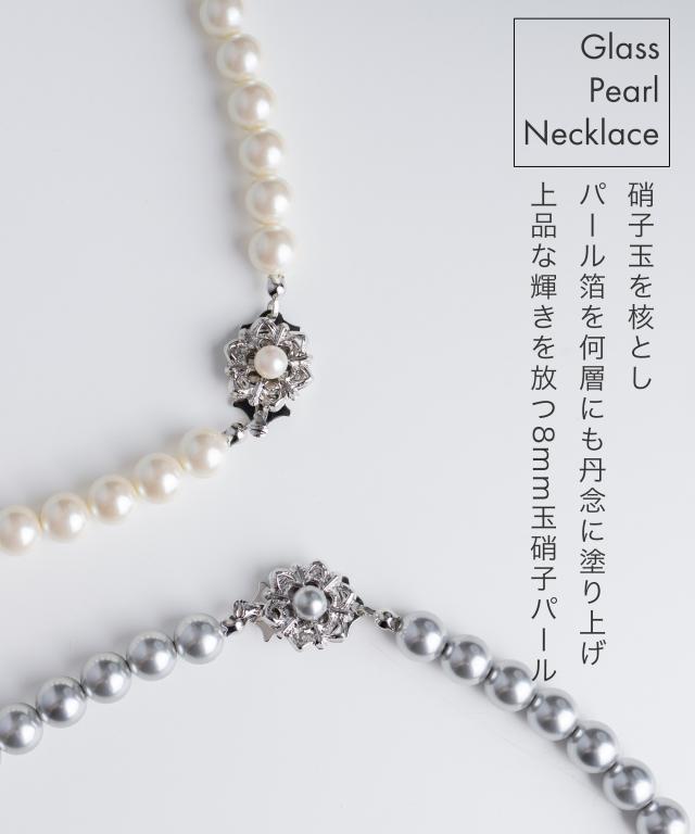 硝子玉を核としパール箔を何層にも丹念に塗り上げ上品な輝きを放つ8mm玉フォーマルネックレス