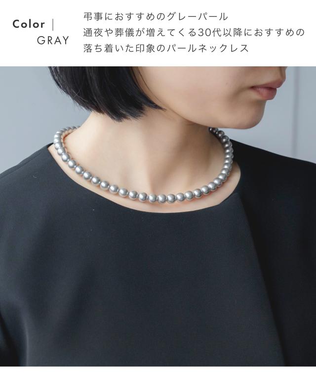 グレー:弔事におすすめ、通夜や葬儀が増えてくる30代以降は一本持っていると安心できる落ち着いた印象のネックレス