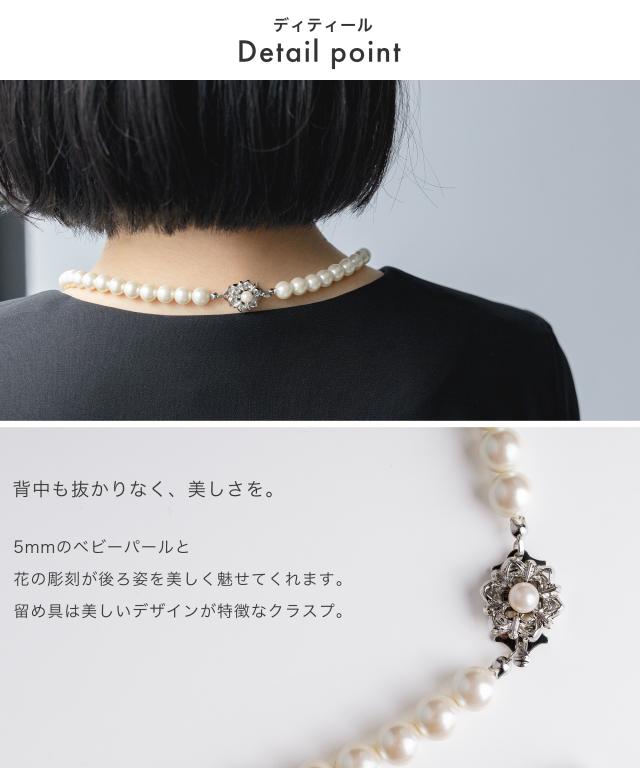 後ろ姿も抜かりなく、5mmベビーパールと花の彫刻が美しいクラスプ
