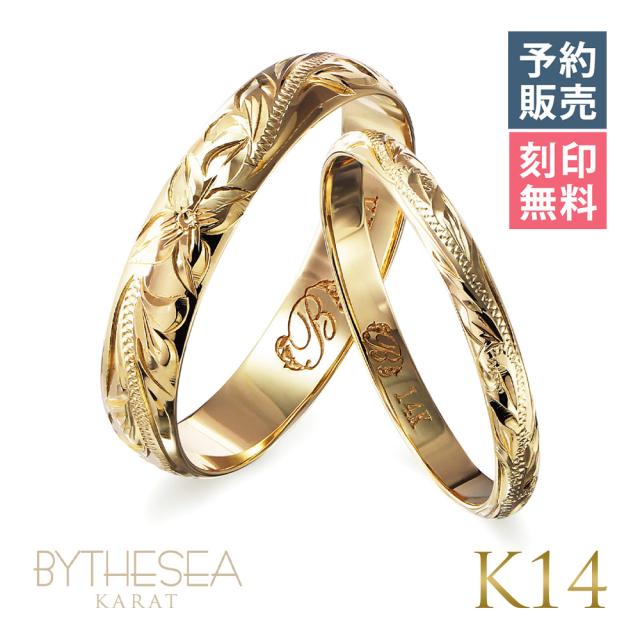 予約注文 ハワイアンジュエリー ペアリング 指輪 リング ペア イエローゴールド 2mm×4mm幅 1号〜19号 刻印無料 名入れ無料 レディース メンズ K14 14金 GMR1011-1015P-Y