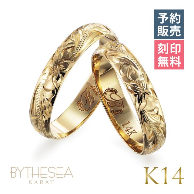 予約注文 ハワイアンジュエリー ペアリング 指輪 リング ペア イエローゴールド 4mm幅 1号〜19号 刻印無料 名入れ無料 レディース メンズ K14 14金 GMR1011P-Y