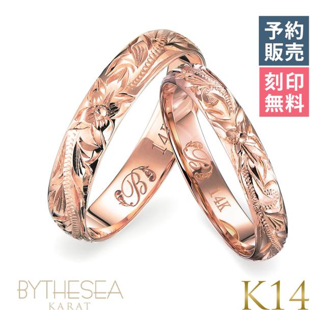 予約注文 ハワイアンジュエリー ペアリング 指輪 リング ペア ピンクゴールド 3mm幅×4mm幅 1号〜15号 刻印無料 名入れ無料 レディース メンズ K14 14金 GMR1012-1019P-Y