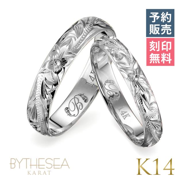 予約注文 ハワイアンジュエリー ペアリング 2本セット 指輪 リング ペア ホワイトゴールド 3mm×4mm幅 1号〜19号 刻印無料 名入れ無料 レディース メンズ K14 14金 GMR1013-1020P-Y