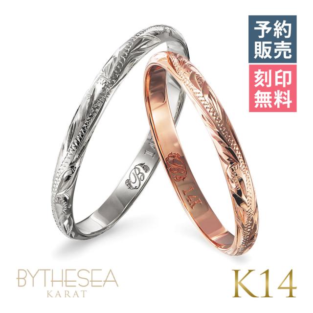 予約注文 ハワイアンジュエリー ペアリング 2本セット 指輪 リング ペア ピンクゴールド ホワイトゴールド 2mm幅 刻印無料 名入れ無料 レディース メンズ K14 14金 GMR1016-1017P-Y