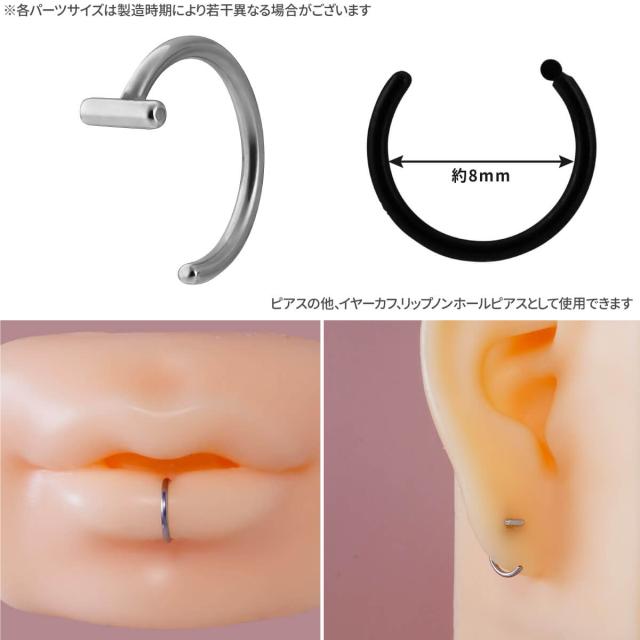 T フープ ピアス 18G サージカルステンレス シルバー ブラック イヤーロブ 軟骨ピアス ボディピアス イヤーカフ リップノンホール