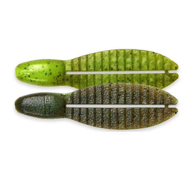 バスがくわえて違和感をおぼえない適度に柔らかいワーム素材を使用。そして塩を少々加え比重を若干高くすることで、ゆっくり倒れこむ余韻アクションを実現。