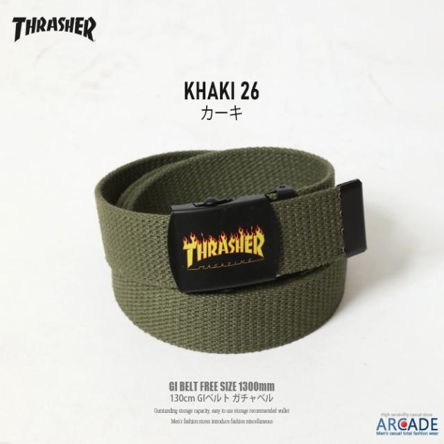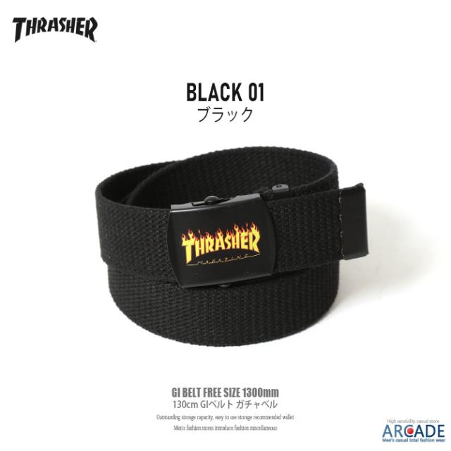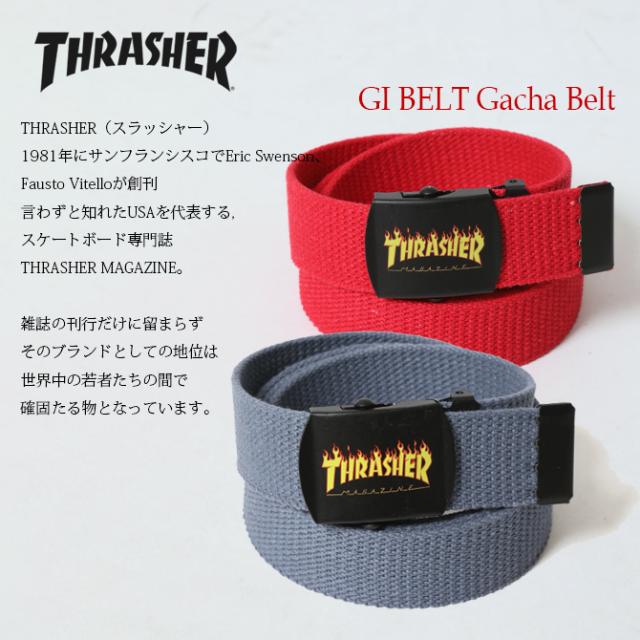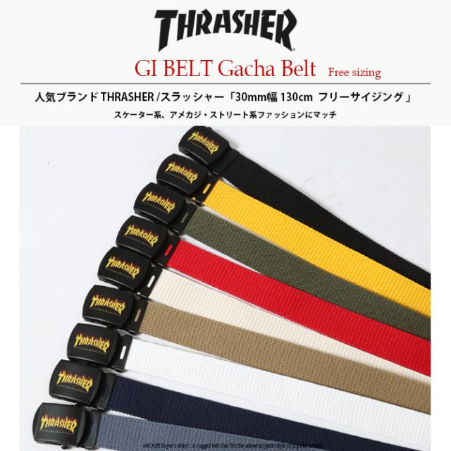 THRASHER ベルト 新作 フリーサイズ GIベルト ファイヤーロゴ メンズ スラッシャー スケーター スケボー ガチャベル 無段階