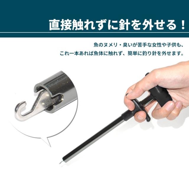 魚のヌメリ・臭いが苦手な女性や子供も、これ一本あれば魚体に触れず、簡単にハリを外せます。