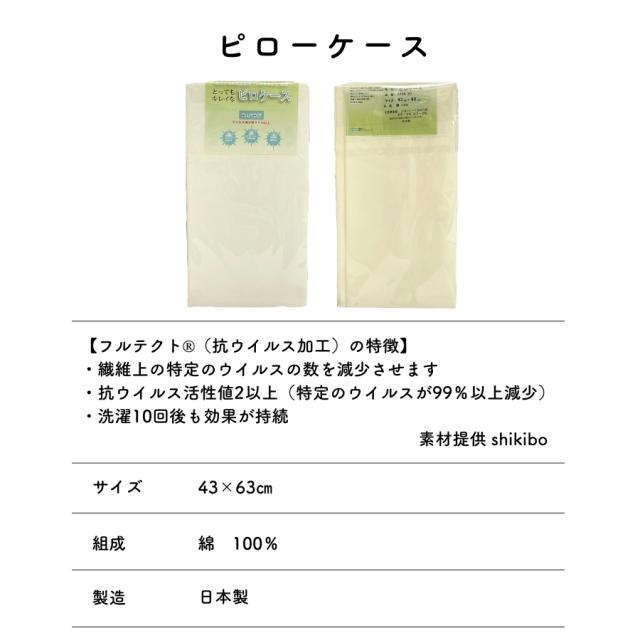 【日本製】抗ウイルス加工生地 フルテクト使用 とってもキレイな ピロケース まくらカバー 綿100% 43cm63cm 封筒式 ノンファスナー