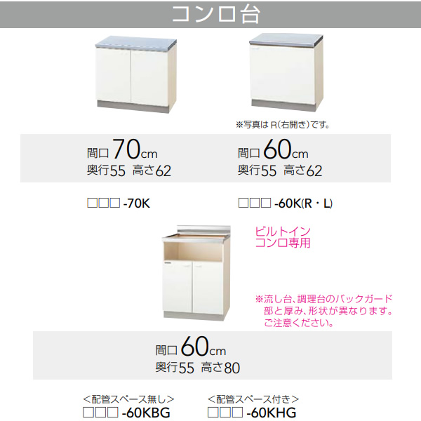クリナップ クリンプレティ コンロ台 ホワイト 間口60cm 右開き GTS-60K-R