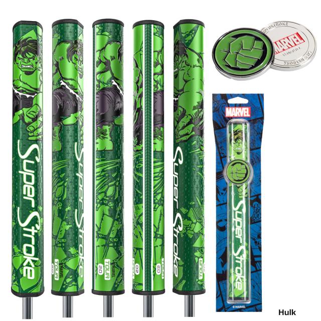 アメコミでお馴染みのアイアンマン、スパイダーマン、ハルクをフィーチャーした特別版パターグリップです。「スーパーストローク ツアー 2.0」のパラレルデザインと大きなプロファイルは、グリップの圧力を軽減し、よりリラックスした均一なパッティングストロークを促進します。