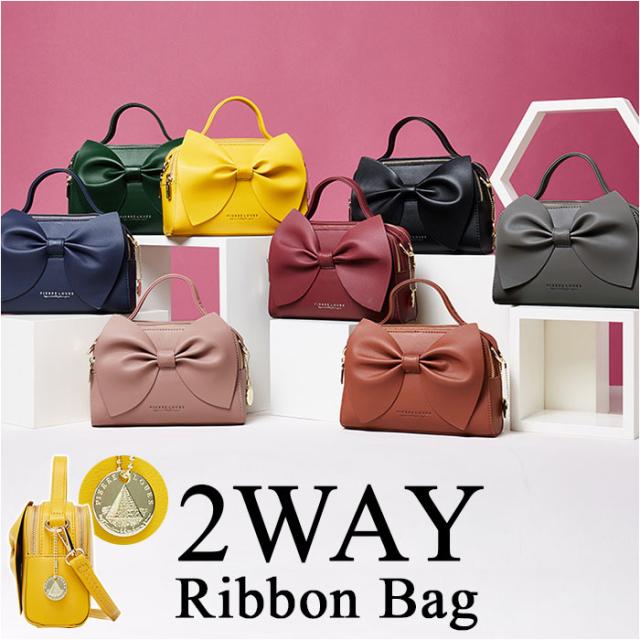 ショルダーバッグ リボン 通販 レディース リボンバッグ バッグ バック 2way ハンドバッグ ショルダー 肩掛け 肩かけ 斜め掛け 斜めがけ ボックス型 オシャレ おしゃれ かわいい