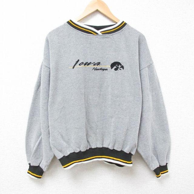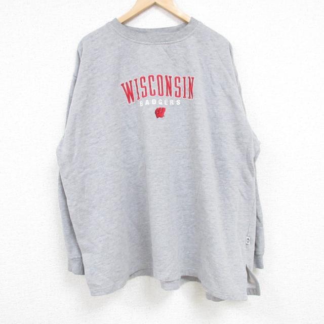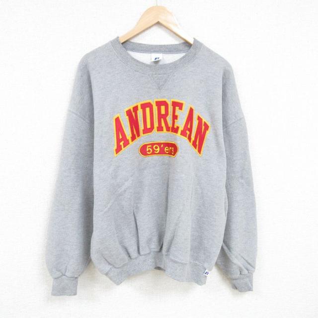 古着 長袖 スウェット メンズ 00年代 00s 刺繍 大きいサイズ クルーネック グレー 霜降り XLサイズ 中古 スエット トレーナー 中古 古着