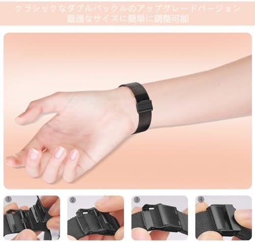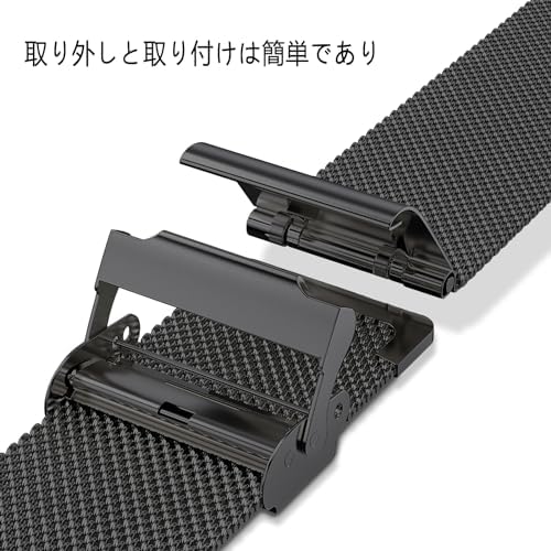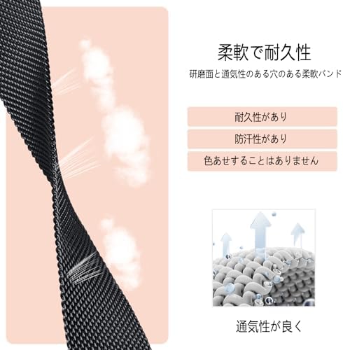 【快適な質感】このバンドはとても軽くて、ステンレススチールニットメッシュデザインを使用しています。通気性が良く、非常に優しい質感です、手に快適に着用できます、長時間着用しても肌に損を与えません。手髪を傷つけません、長期使用できます。ビジネスまたはプライベートでの使用に非常に適しています。