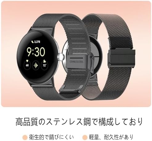 【高品質素材】弊社のGoogle Pixel Watch 2/ Google Pixel Watch 対応バンドはステンレスチール素材です、水洗いが可能でサビを防ぎます。各インターフェースは特別に処理されており、取り付けが簡単で、耐久性が高く、傷を防止します。