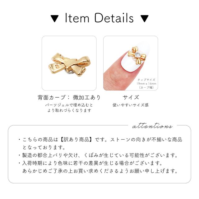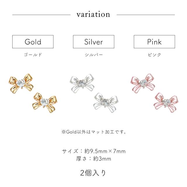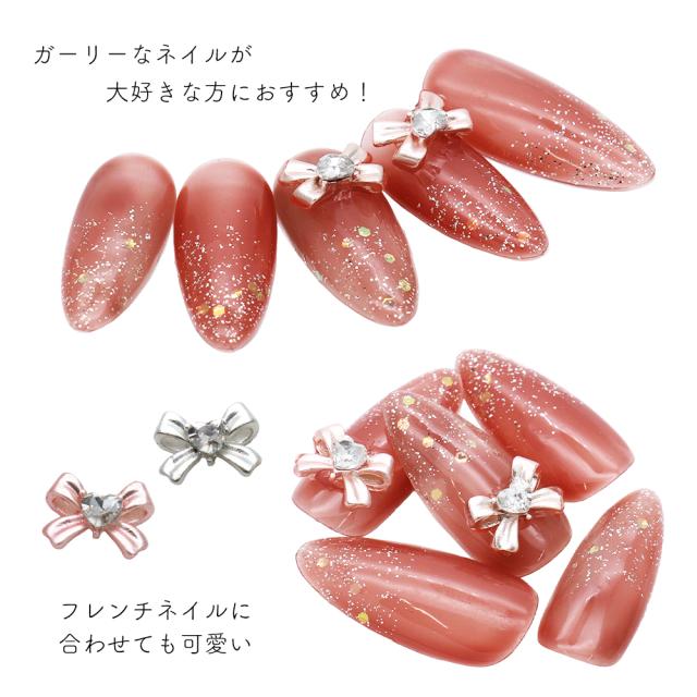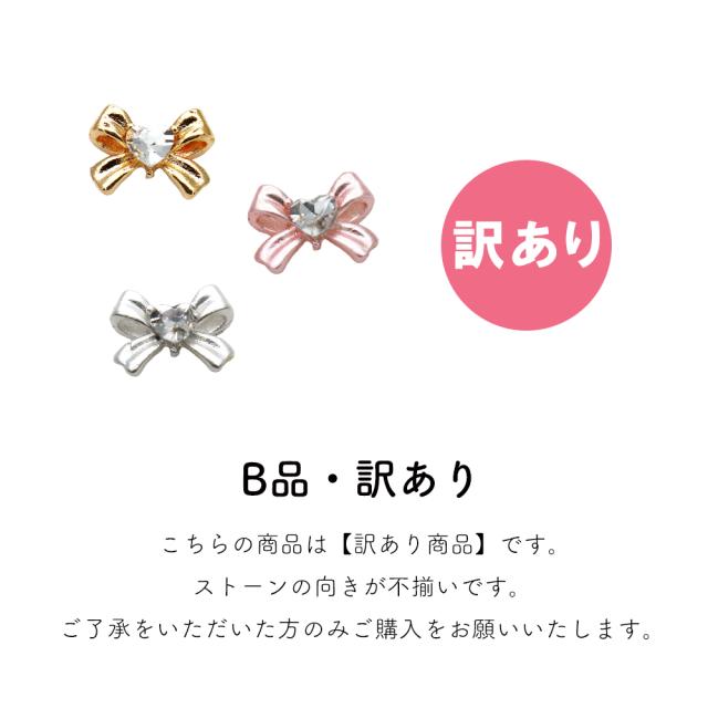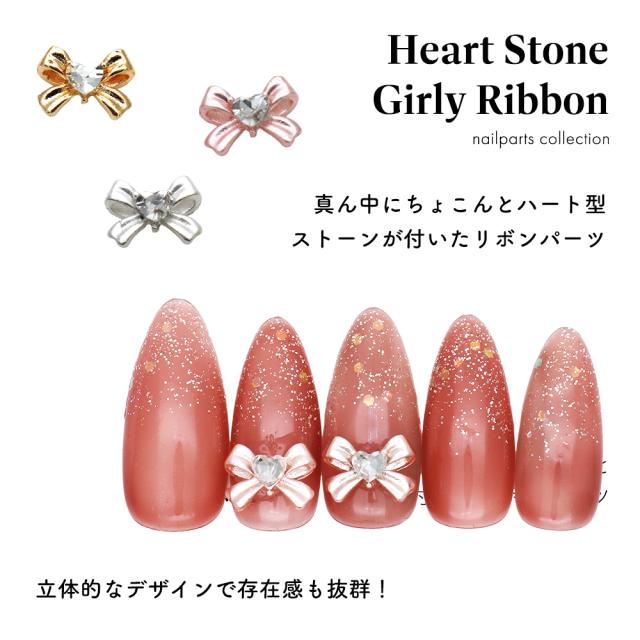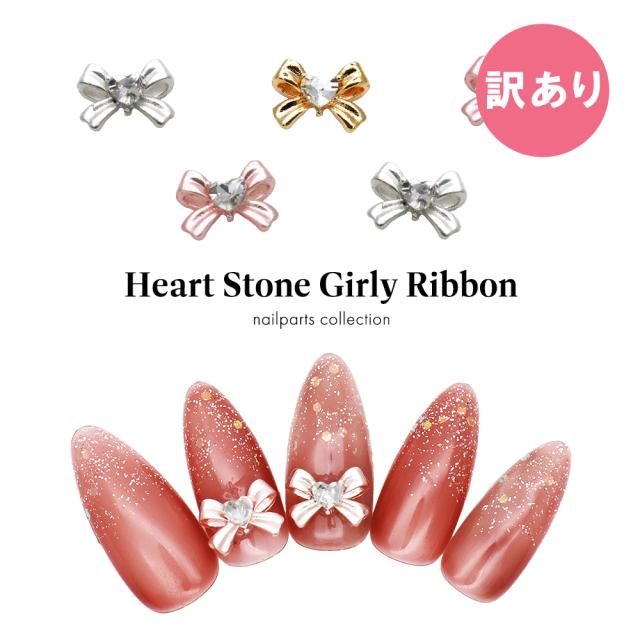 【訳あり】ネイルパーツ ハートストーン付きガーリーリボンパーツ [ゴールド/シルバー/ピンク] 全3色