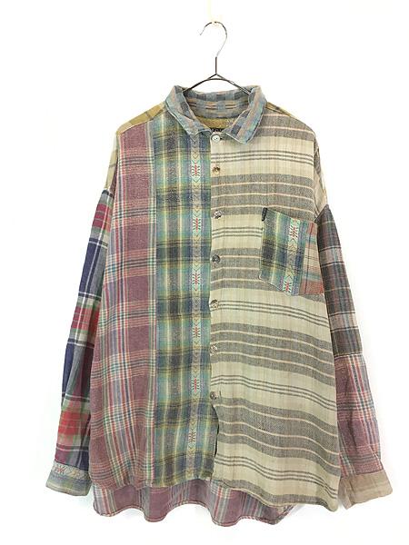 古着 90s USA製 CITRON ネイティブ チェック クレイジー パターン ビッグシルエット フランネル シャツ L
