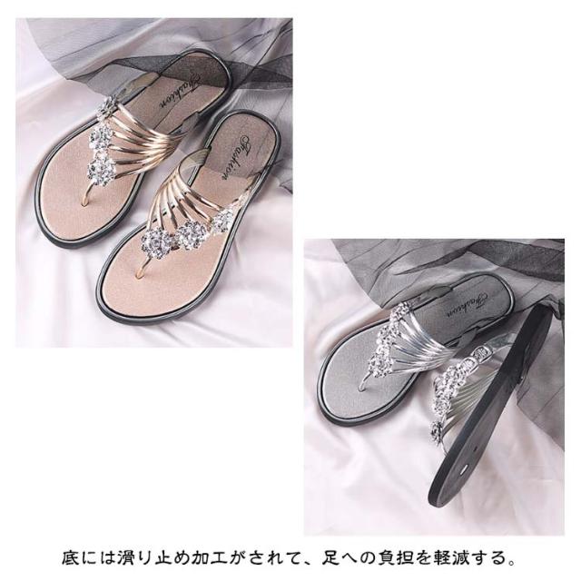 歩きやすい レディース サンダル ペタンコ 滑り止め キラキラ 疲れない トングサンダル ローヒール フラット サンダル 軽量 ビーチサンダル カジュアル 痛くない 履きやすい リゾート 旅行