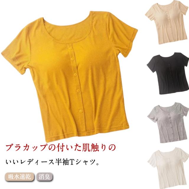 汗染み 半袖 カットソー 半袖tシャツ カップ付き インナーシャツ 汗 カップ付きtシャツ 消臭 夏 吸水速乾 きれいめ レディース 汗じみ防止 ニット 対策 夏 無地tシャツ ルームウェア 女性服 無地 uネック トップス カップ付き 速乾 シンプル ヨガ おしゃれ