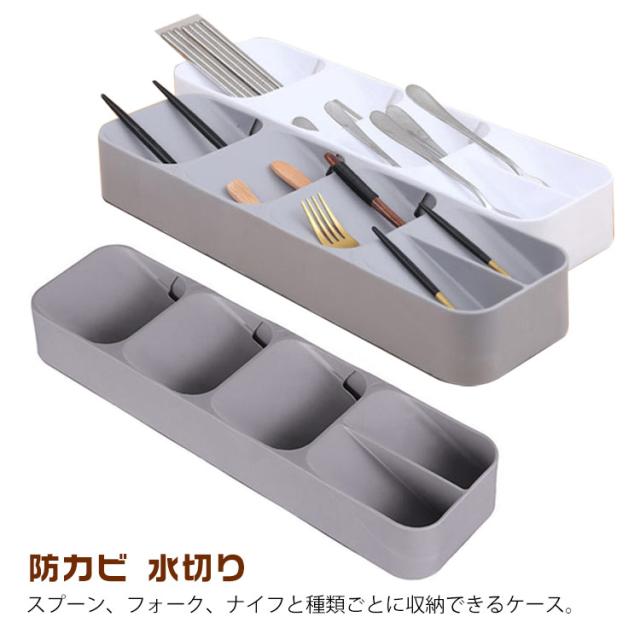 引き出し式 カトラリー スプーン ケース 箸いれ 水切り カラトリー入れ 収納ケース 箸ケース ナイフ フォーク 収納 箸 キッチン 整理 カラトリー入れ ベージュ グレー
