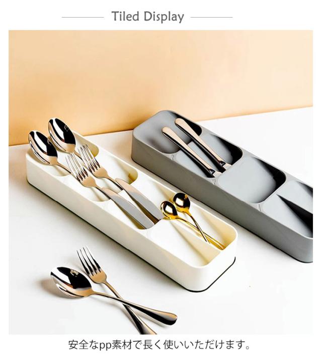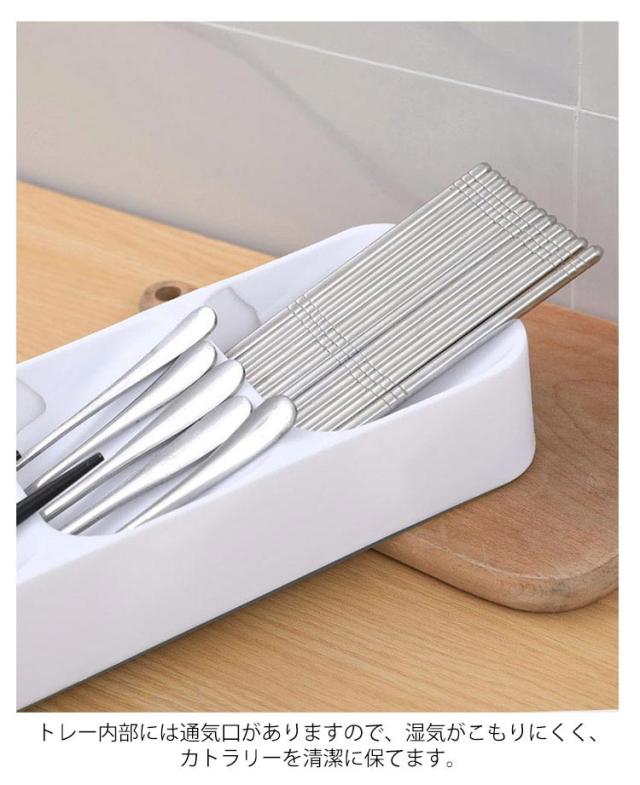 | スプーン、フォーク、ナイフと種類ごとに収納できるケース。 安全なpp素材で長く使いいただけます。 引き出しの分け収納デザインで内部スペースが効率的に使用できるようになります。 傾斜を持たした構造で、入れやすくて取り出しやすい。 トレー内部には通気口がありますので、湿気がこもりにくく、カトラリーを清潔に保てます。 丸みがあるフォルムで大切な家具を傷つけない。 | |