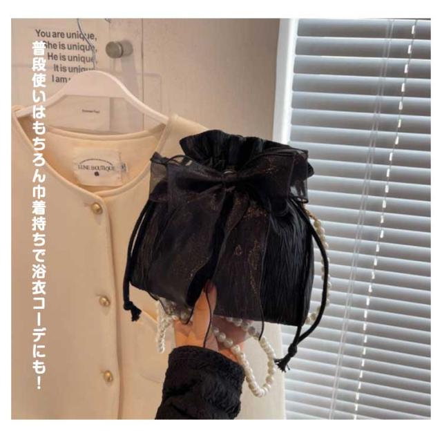 | パールチェーンの大きなリボン付きミニショルダーバッグ きゅっと絞った立体感がポイント。肩紙のパールがアクセントになって、オシャレ&可愛い仕上がりです。 肩掛けや斜め掛けでもお使いいただけるショルダーストラップ付き。 大きく開く開閉口で、荷物の出し入れもスムーズ。 光沢のある生地がちらりと高見えデザイン。 表面はジャガード加工されており、高級感をプラス。 パールショルダーストラップ。ショルダーが取り外し可能デザイン派手すぎず、大人が可愛いのデザインと斜めがけに丁度いい長さ。軽量なので日常使いにもオススメです。 普段使いはもちろん巾着持ちで浴衣コーデにも! | |