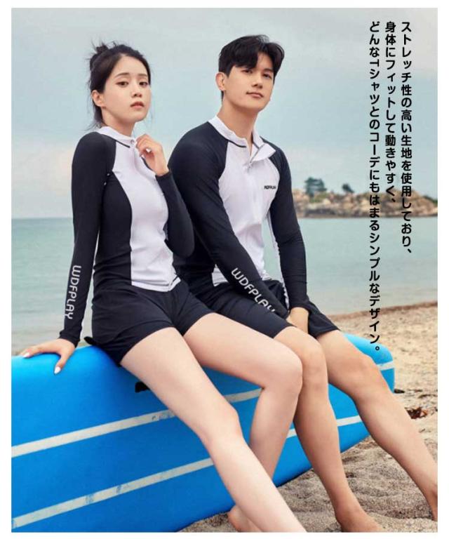 | プールや海で日焼け防止や速乾性に優れたラッシュガード上下セット ラッシュガードはもともとサーファーのためにケガ防止や日焼け防止のために作られた物で、最近では紫外線対策や冷え対策に一般の方にも海やビーチで使われ、夏の必須のアイテムになりつつあるアイテムです。 さらっとした手触りで吸湿性に優れており、速乾性が高く、海やプールで泳いだ後のビーチやプールサイドでも気持ちよく着られる。 UVカット・肌荒れ対策機能付きも嬉しいポイントです 薄手の生地で風通しも良く涼しい1枚。 ストレッチ性の高い生地を使用しており、身体にフィットして動きやすく、どんなTシャツとのコーデにもはまるシンプルなデザイン。 山、海、川、プール、海水浴、旅行の移動時や車内、キャンプ、アウトドア、フェス、ランニング・ヨガ(ホットヨガ)など水着(スイムウェア)・マリンウェア・スポーツウェアとしてもご利用いただけます。 | |