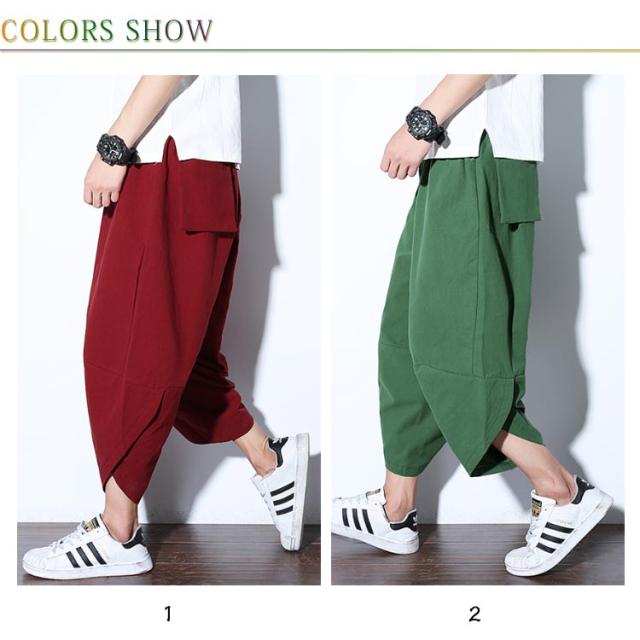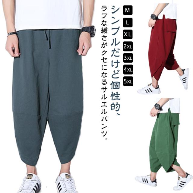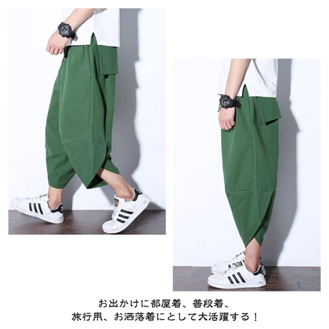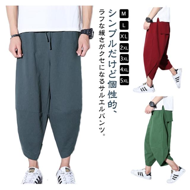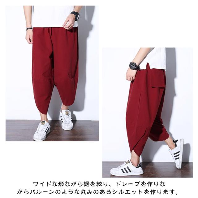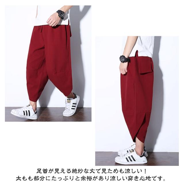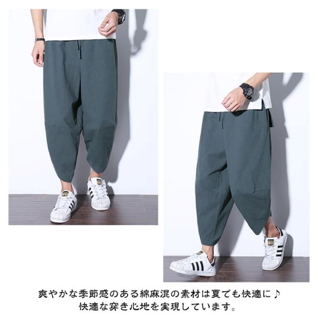 サルエルパンツ ズボン メンズ アラジンパンツ ワイドパンツ 夏用 涼しい 7分丈 袴パンツ サルエルパンツ ボトムス イージーパンツ ゆったり 綿麻パンツ カジュアル クロップドパンツ 春夏 リラックス 送料無料