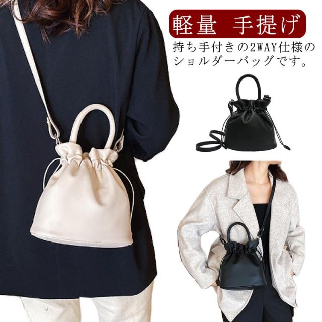 レディース 巾着バッグ おしゃれ 斜め掛け 巾着 フェイクレザー ショルダーバッグ バッグ 小さめ ミニ 軽量 無地 お出かけ かばん トートバッグ 手持ち かばん 大人 かわいい 肩掛け シンプル 2way