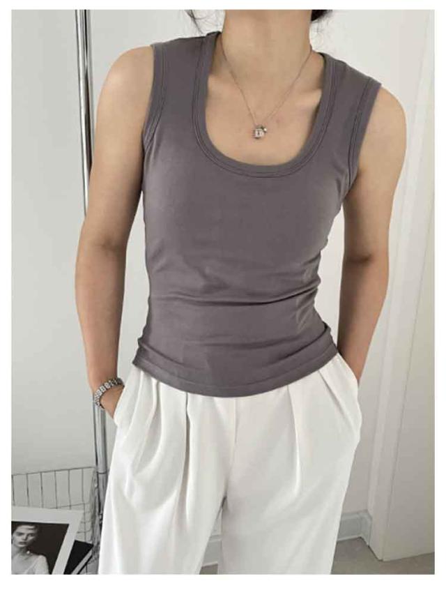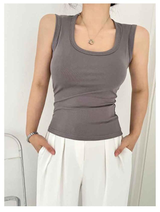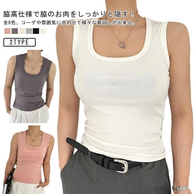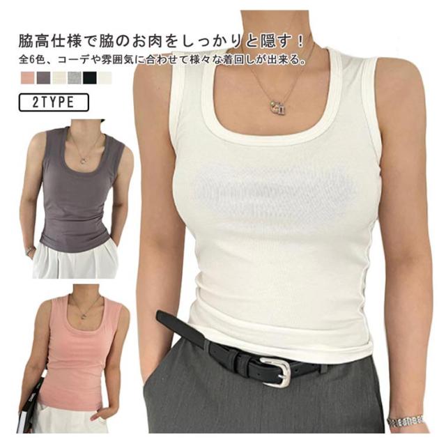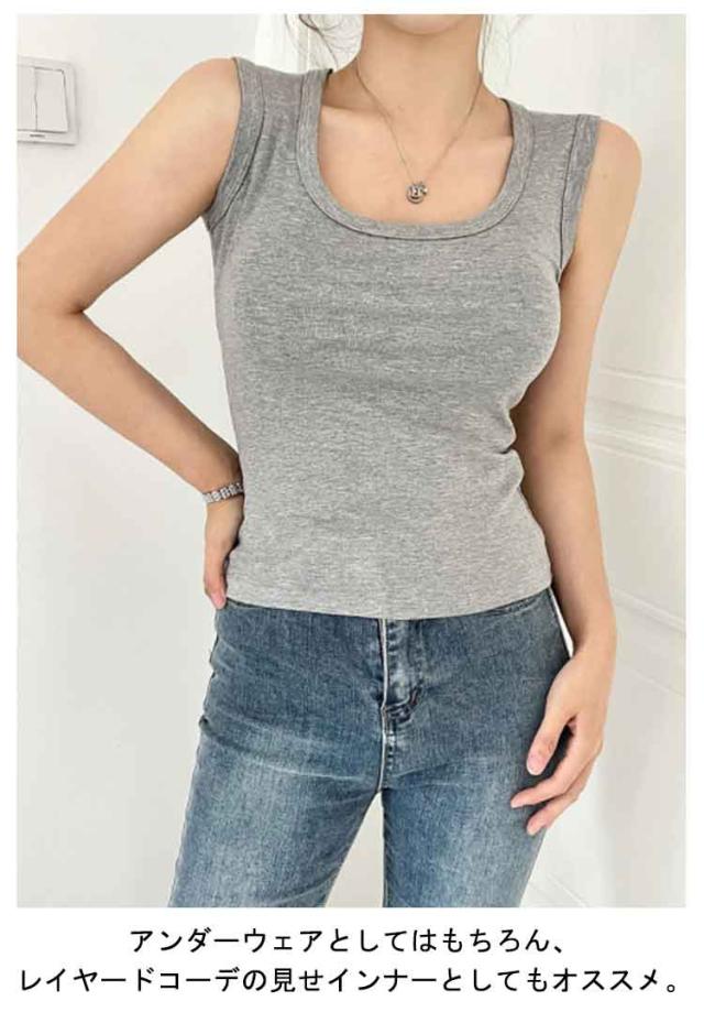 カップなし タンクトップ 見せる下着 レディース レイヤード ニットタンクトップ ノースリーブ スクエアネック スクエアネック アンダーウェア 重ね着 おしゃれ 春夏 インナー 下着 トップス 見せるインナー M