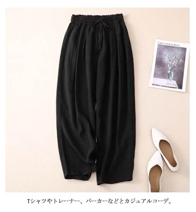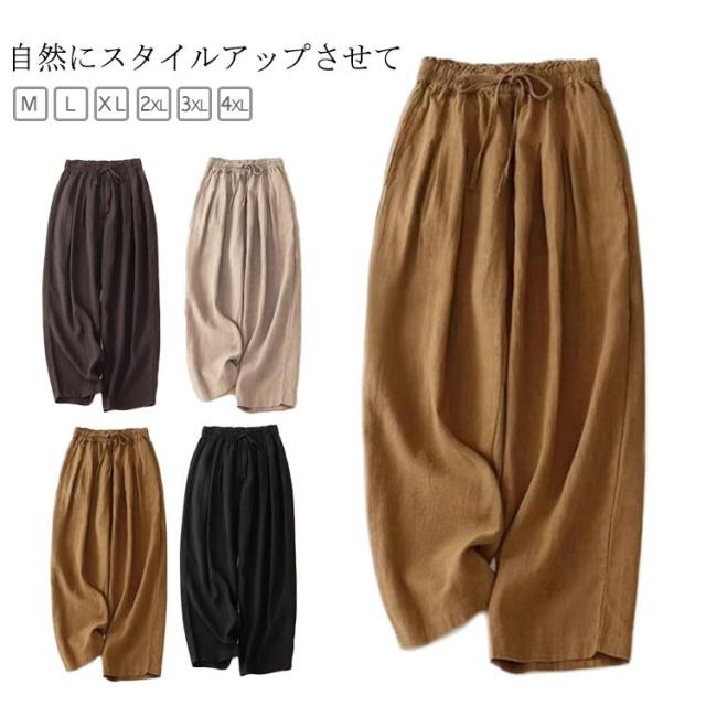 コットン 春 ワイドパンツ セミワイド 大きいサイズ ボトムス 麻 リネンパンツ パンツ イージーワイドパンツ ウェストゴム/リボン ゆったり レディース カジュアル ルームウェア イージーパンツ 夏 リネン ワイドパンツ ウエストゴム レディース 綿麻