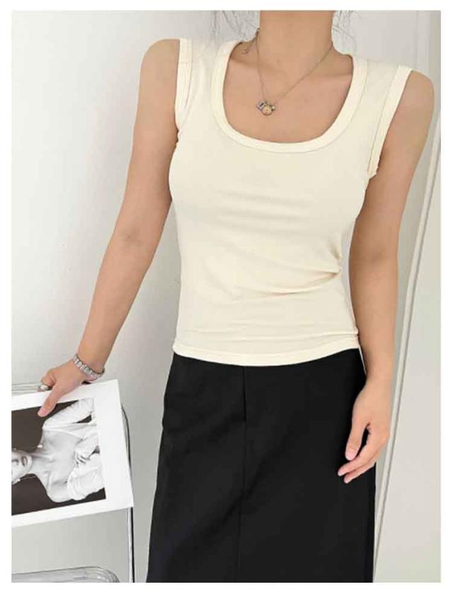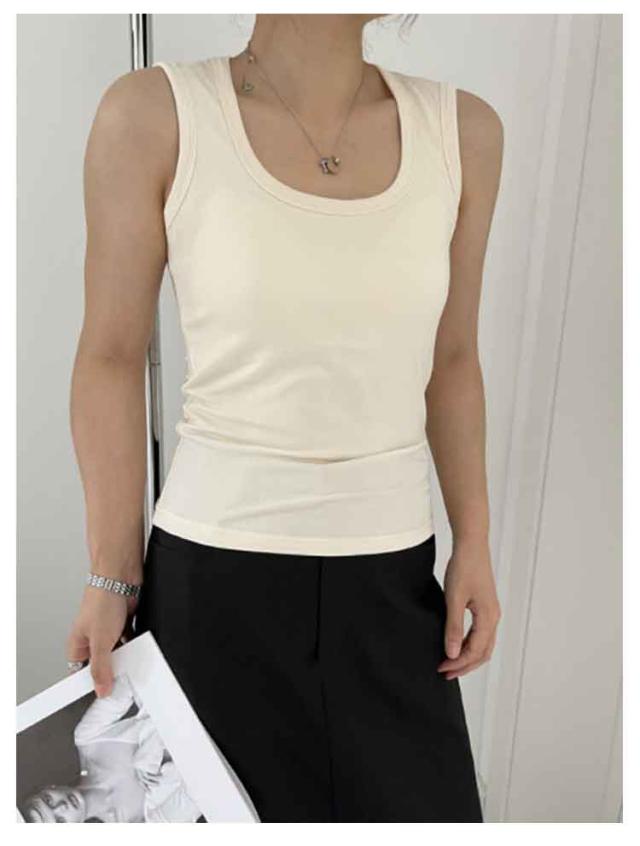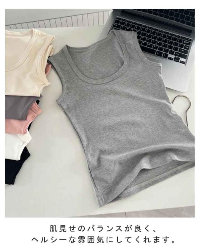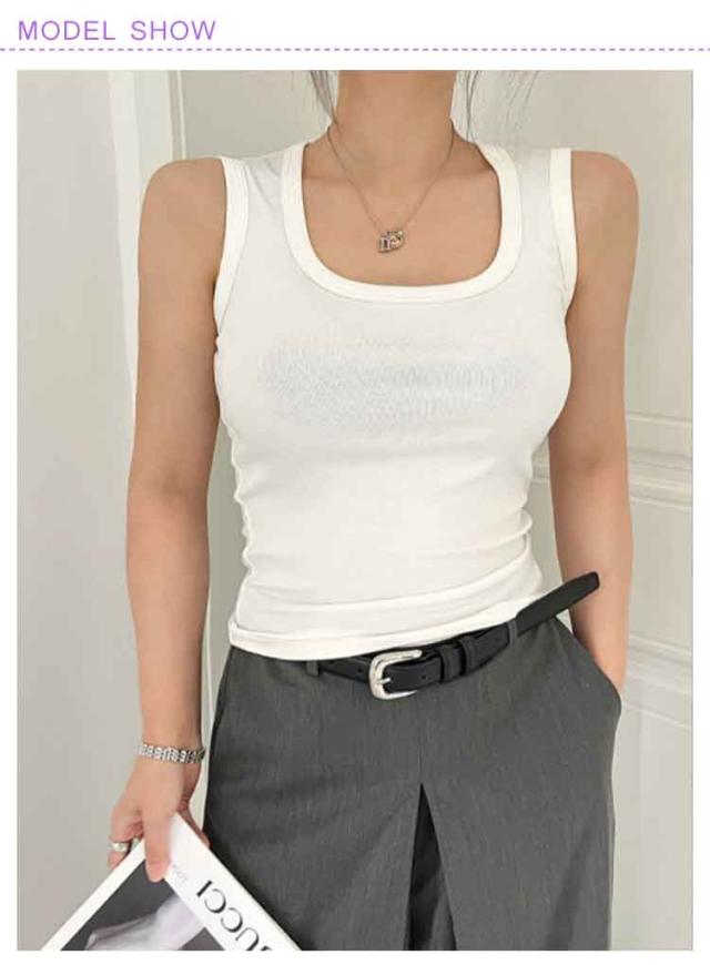 スクエアネック インナー トップス カップなし カップ付き タンクトップ 見せる下着 ノースリーブ レディース レイヤード ニットタンクトップ おしゃれ 春夏 アンダーウェア 下着 スクエアネック 見せるインナー M