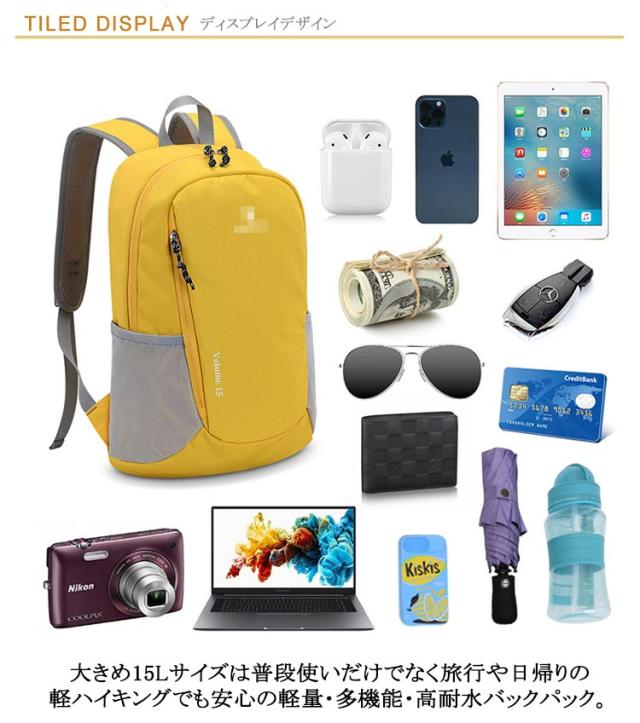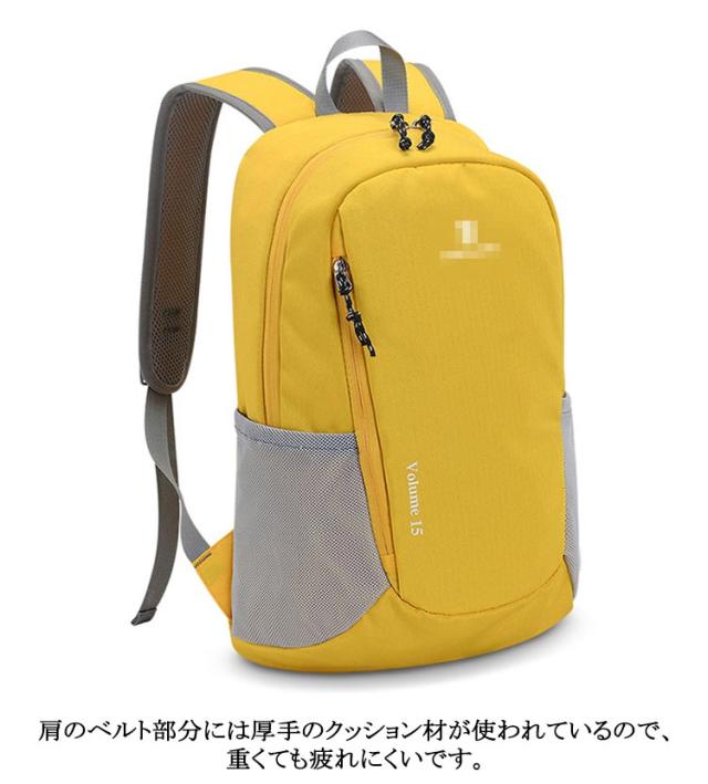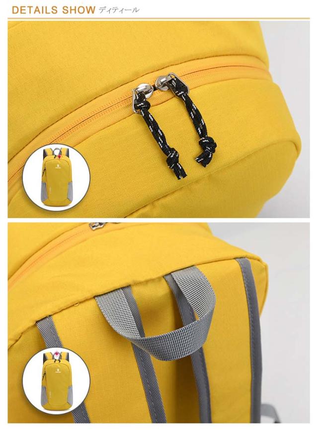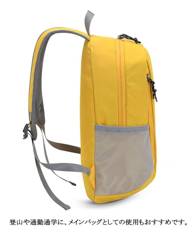 | 軽量で使いやすい機能も充実!大容量登山リュック 大きめ15Lサイズは普段使いだけでなく旅行や日帰りの軽ハイキングでも安心の軽量・多機能・高耐水バックパック。 重さも240gと背負っているのを忘れるくらい軽いのに、サイドポケットや内ポケットなど使いやすい工夫も盛りだくさん♪ 薄手・軽量ながら高い耐久性を備えたナイロン素材は優れた耐水性能を備えており、程度の雨を防ぐことができます。 肩のベルト部分には厚手のクッション材が使われているので、重くても疲れにくいです。 シンプルで洗練されたデザインながら、丈夫で使いやすい機能をしっかりと備えた、身軽で自由な旅を楽しめます。 登山や通勤通学に、メインバッグとしての使用もおすすめです。 | |