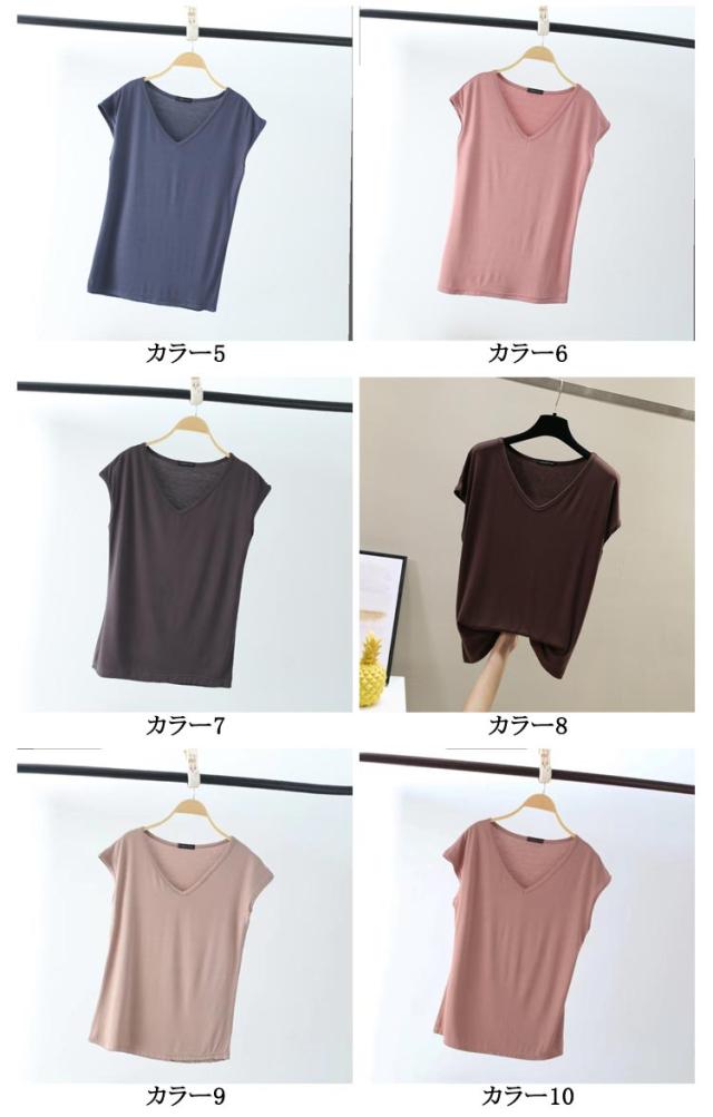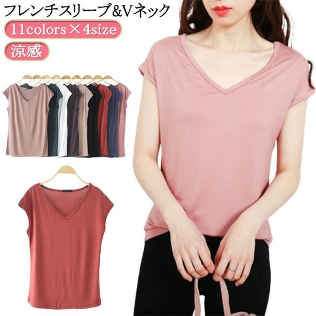 ルームウェア ノースリーブ 半袖 冷感 薄手 vネック トップス 夏 涼しい 接触冷感 インナー 春 フレンチスリーブ とろみ インナーシャツ 涼感 シンプル ひんやり 速乾 ストレッチ 大きいサイズ ゆったり カジュアル tシャツ 無地 レディース