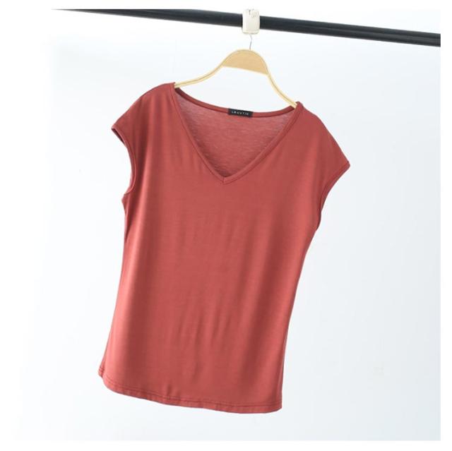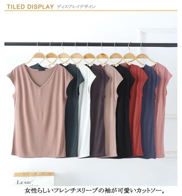 | 11colors×4size フレンチスリーブ&Vネック 女性らしいフレンチスリーブの 袖が可愛いカットソー。 着回しやすいシンプルなデザインなので、 いろんなコーデと合わせられます。 肌触りの良い滑らかな生地で、 伸縮性も抜群♪ | |