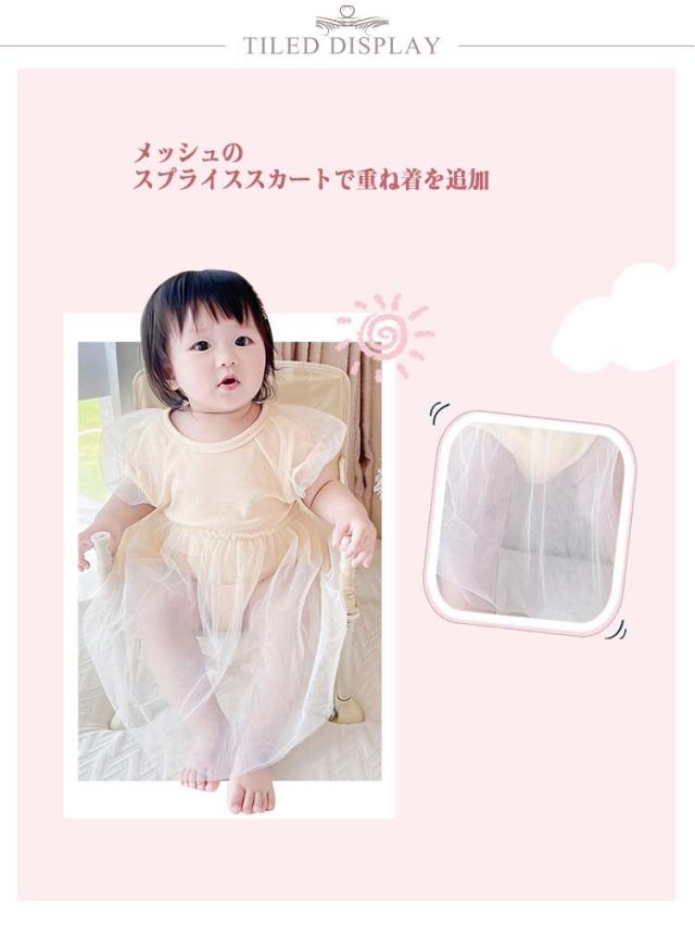 | ソフトメッシュベビーワンピース メッシュのスプライススカートで重ね着を追加 スナップボタン仕様で着脱も簡単です おしゃれで可愛いのでプレゼントにも最適です | |
