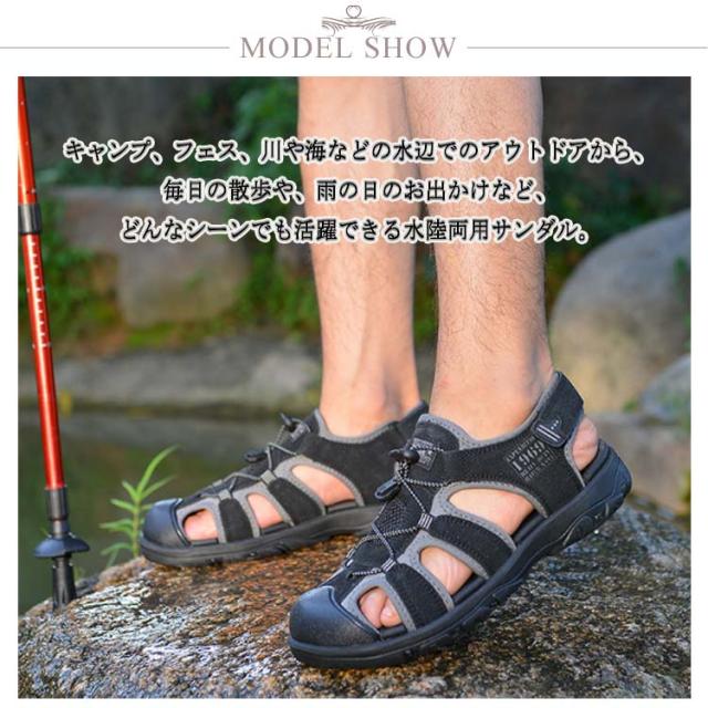 | 滑り止め、耐衝撃、軽量の水陸両用アウトドアサンダル。 安心のつま先保護設計、安心してアクテイブに動くことができるスポーツサンダル。 紐で調節できるから、足に合わせてしっかりホールドすることが可能。 キャンプ、フェス、川や海などの水辺でのアウトドアから、毎日の散歩や、雨の日のお出かけなど、どんなシーンでも活躍できる水陸両用サンダル。 かかとはマジックテープ設計、履き脱ぎ簡単! EVA素材の耐衝撃ソール、軽量で弾力性、耐久性が高く、長時間履いても足が疲れにくい。 | |