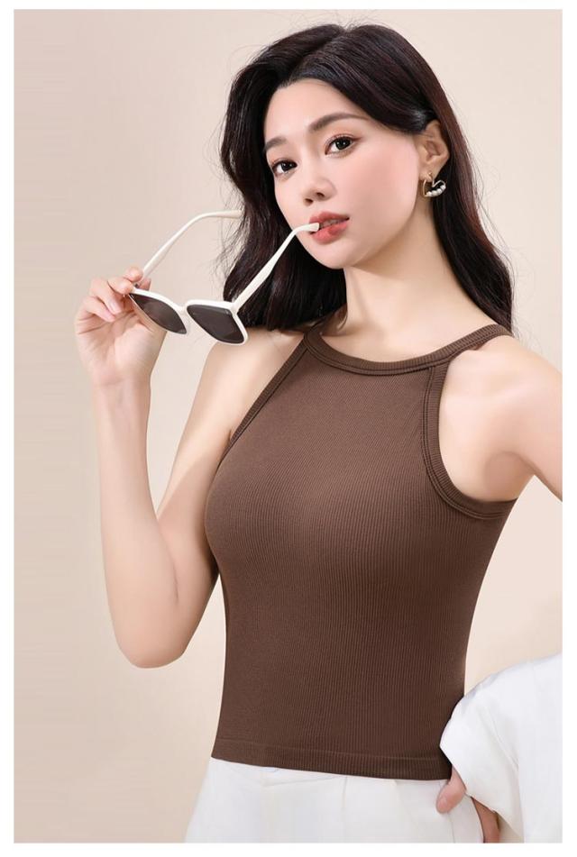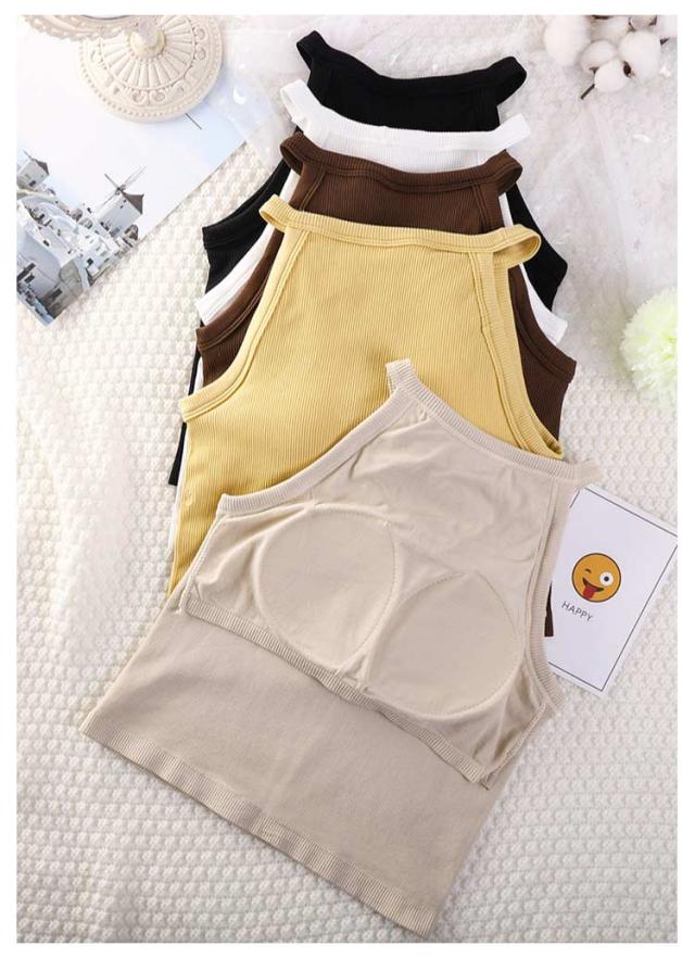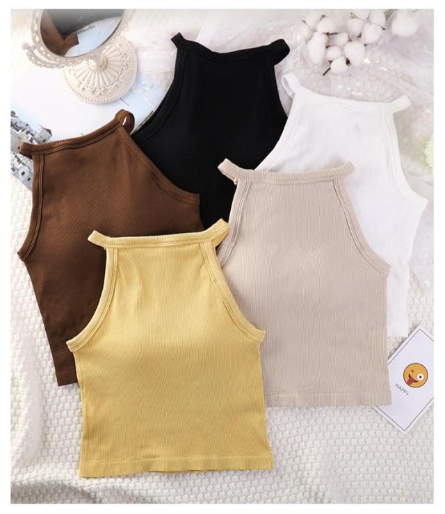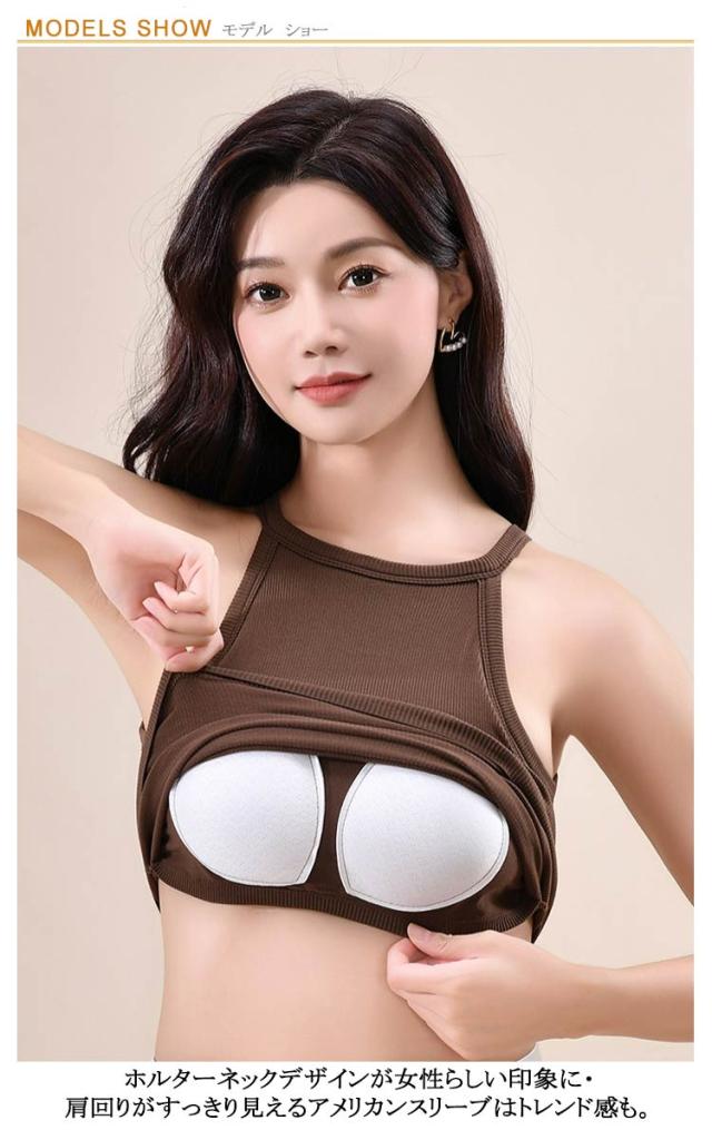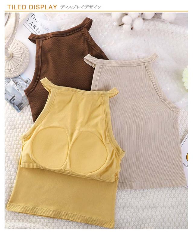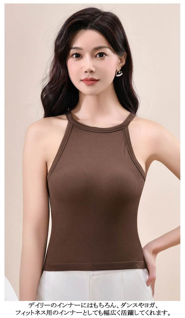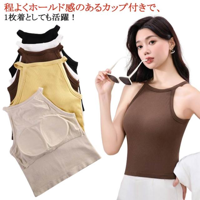 トップス 無地 カップ付きキャミソール ブラトップ レディース ホルターネック シンプル リブ生地 キャミソール インナー おしゃれ 部屋着 タンクトップ ブラカップ レイヤード 重ね着 お洒落 カップ付き ストレッチ性 リラックスウエア 春夏