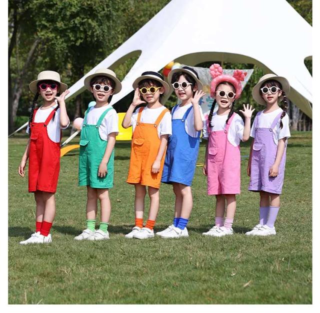 ダンス衣装 カラフル サロペット カラーパンツ 子供用 キッズ服 おしゃれ ジャズ 薄手 夏用 ダンス ヒップホップ 男の子 女の子 ジュニア 卒業式 幼稚園 発表会 演出服 入学式 オーバーオール