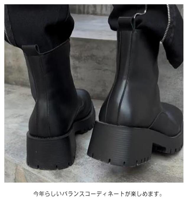 厚底 メンズ ジッパー スクエアトゥ ショートブーツ ブーツ センタージップ レディース 男女兼用 ジェンダーレス 痛くない 歩きやすい 履きやすい 靴 カジュアル ボリュームソール フロントジップブーツ