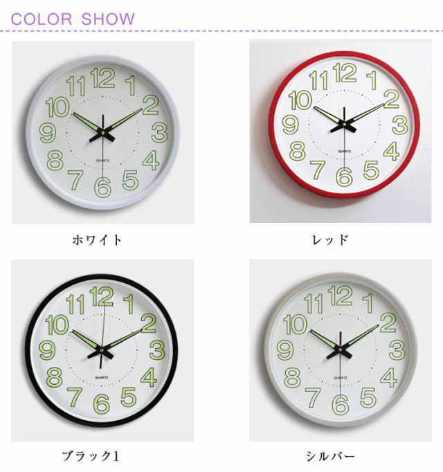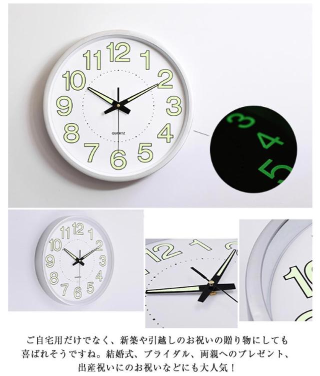 | 静音・夜光・軽量!直径30cm! 夜光文字盤と針の組み合わせで可愛らしい雰囲気を演出する壁掛け時計です。 静音走査式ムーブメントを採用し、良好な睡眠と仕事環境を創造します。 蛍光塗料付きで、暗いところでも、時間が見やすいです。 数字が大きいので遠くからでも視認性がいいです。 ご自宅用だけでなく、新築や引越しのお祝いの贈り物にしても喜ばれそうですね。結婚式、ブライダル、両親へのプレゼント、出産祝いにのお祝いなどにも大人気! | |