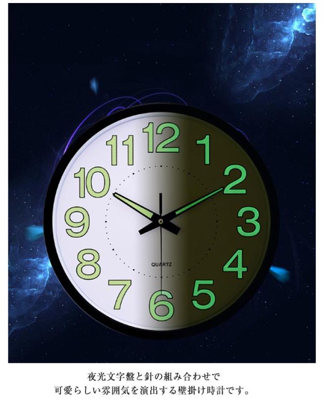 掛け時計 静音 デジタル 蓄光塗料 壁掛け時計 夜光 おしゃれ ウォールクロック 非電波 見やすい 夜でも見える 静か 夜光る PVC 仕事 直径30cm 壁時計 掛時計 リビング 部屋 寝室 軽量